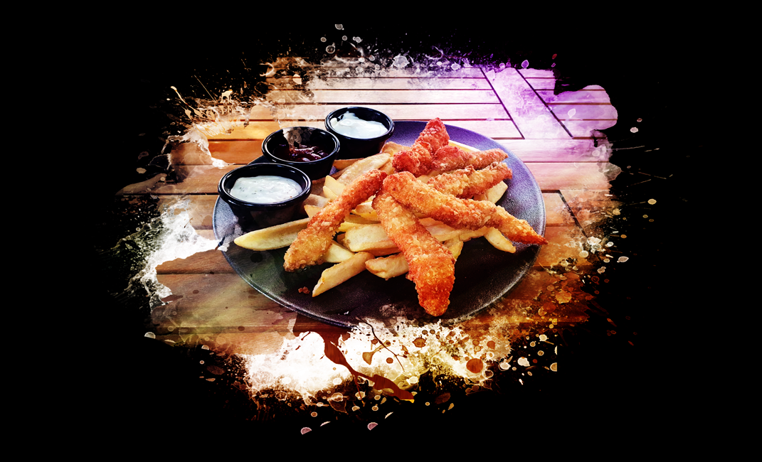 Prženi kolutići i krakovi lignje, captain umak, coleslaw salata, rajčica, ukiseljeno povrće, tartar umak + pomfrit.